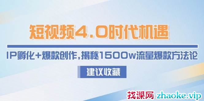 短视频4.0时代机遇 IP孵化+爆款创作 揭秘1500w流量爆款方法论