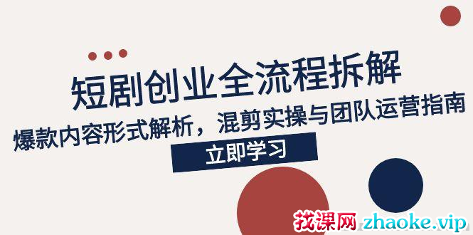 该课程系统讲解短剧项目从市场分析到变现的全流程,覆盖爆款内容创作、混剪技术、团队运营等核心模块,重点拆解抖音短剧的创作秘诀与避坑指南,通过拉片教学强化实战能力,定位轻资产创业赛道。