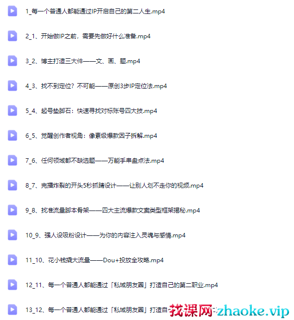 课程简介:公域平台打造个人IP快速涨粉变现课程目录: