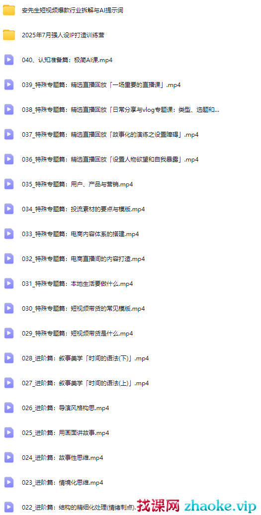 课程简介:7月全新5.0课重程磅升级!!!安先生的课懂得自然懂7月30更新:2025年7月强人设IP打造训练营7月13更新40节+课件课程目录: