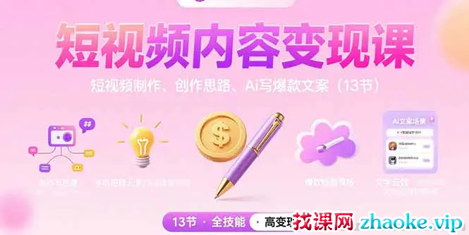 短视频内容变现课 短视频制作、创作思路、Ai写爆款文案
