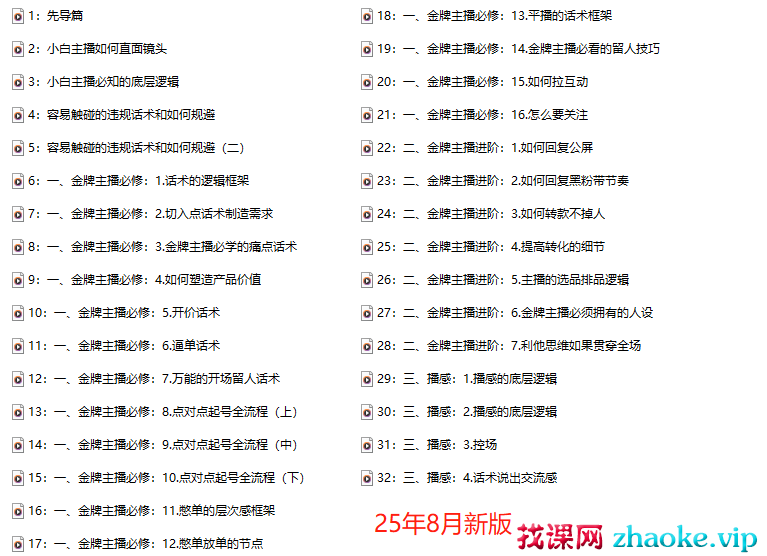 课程简介:从0到1教你成为金牌运营型主播课程目录: