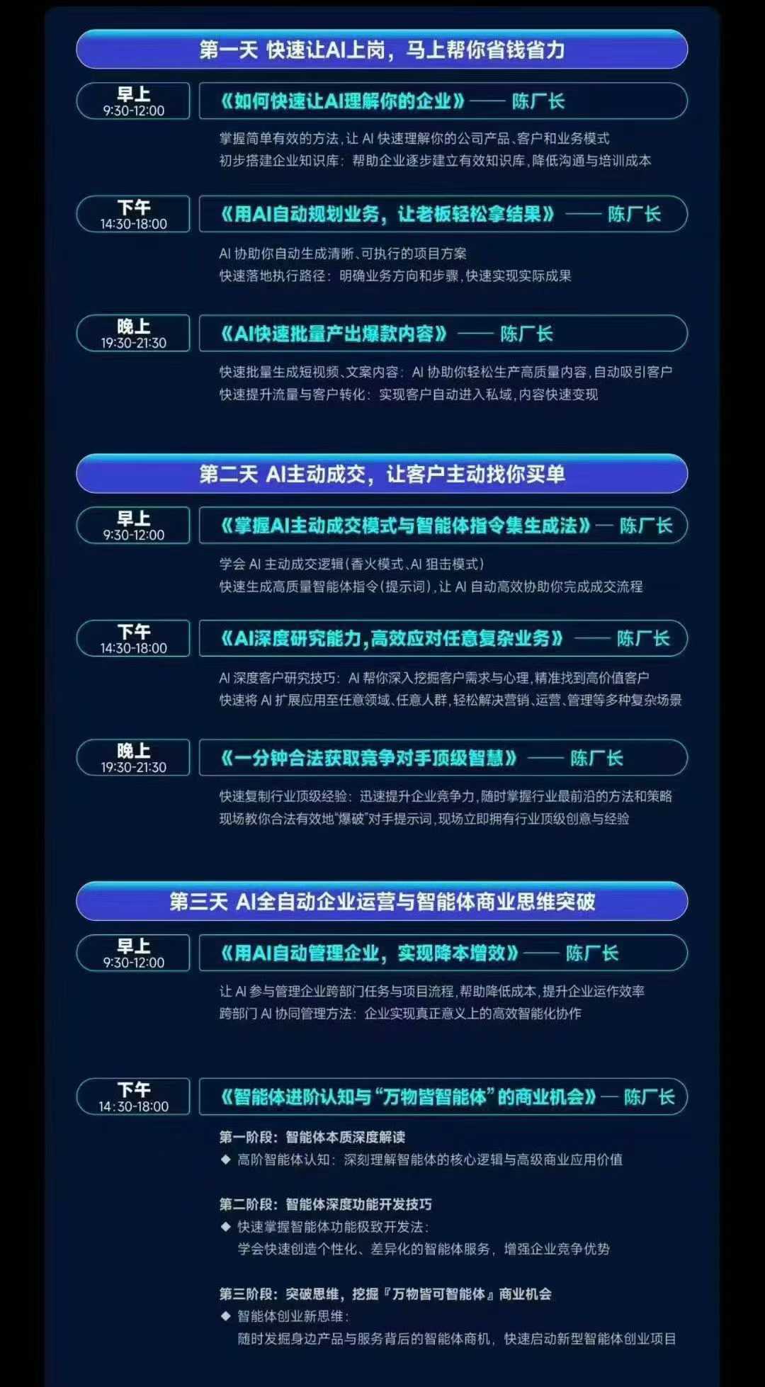 陈厂长11月25-27号AI智能体实战创业营(价值25800元)