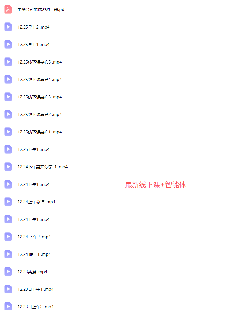 课程简介:三天线下课全程高清录像+完整版智能体知识库课程目录: