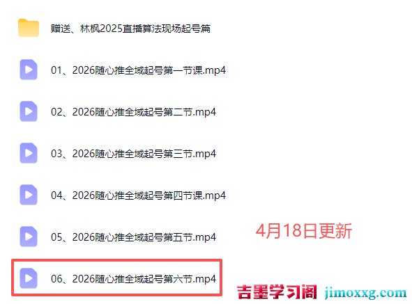 课程简介:#4月18日更新6节:🔥【2026新版年强势推出】开年大课,这套“随心推全域起号”打法倾囊相授无论你是高可单还是低客单,直接拿回去就能落地看完直接开播课程目录: