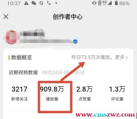 流量大,一周时间900万播放量,给大家看一下我们测试账号的截图: