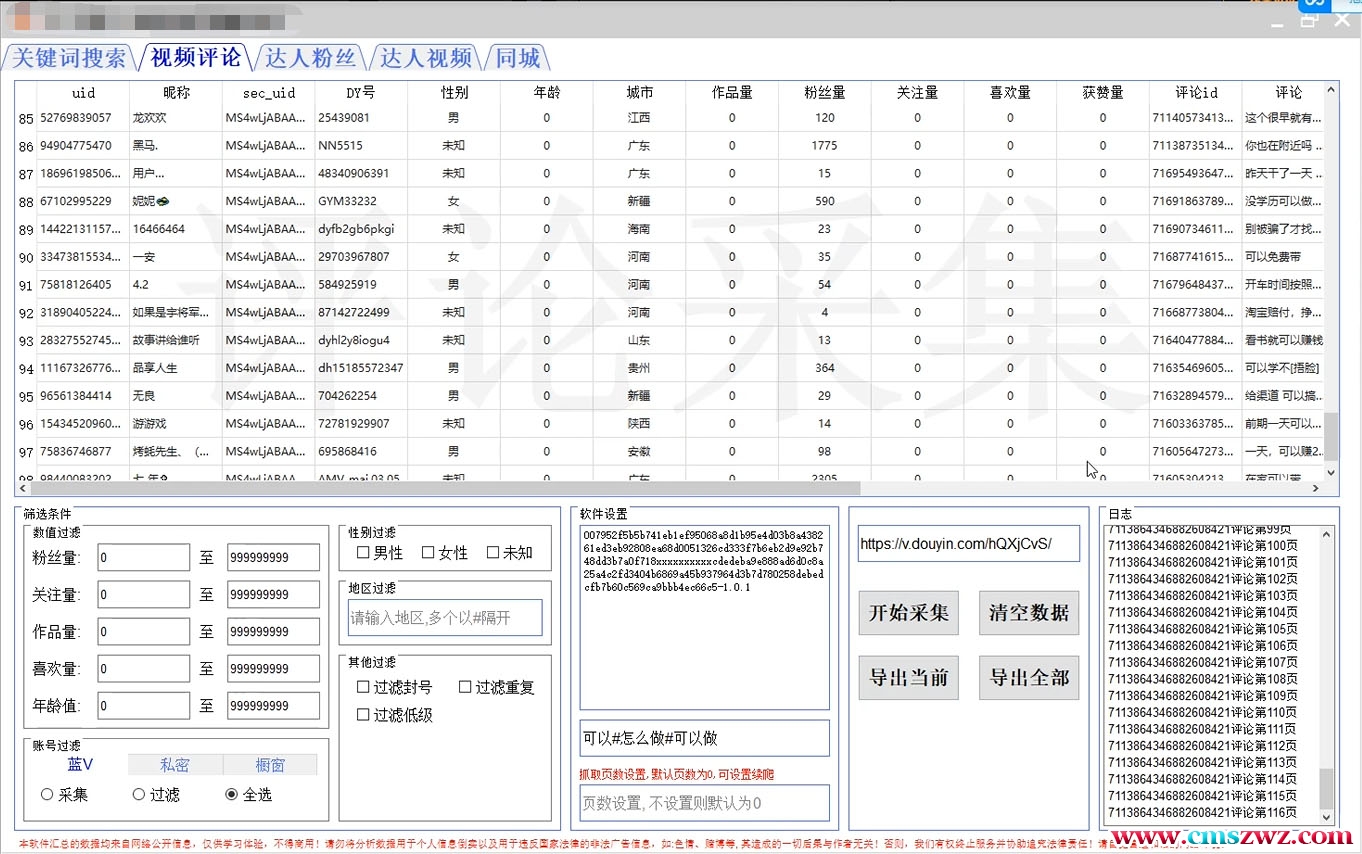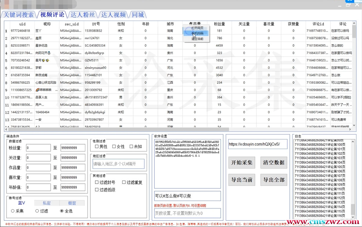 本软件是破解版抖音获客软件设备要求:电脑本软件功能强大具体功能上图,内含详细的教程说明,本人亲测录制的视频本项目网站制作分享,不提供一对一指导服务,介意的请勿下单。