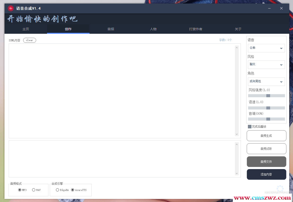 市场上各种语音剪辑软件很多,大多都是收费的;而且有的功能是我们使用时没有的!正常的转换功能基本都有,但无法合成!该软件完全免费,是最大的特点是语音拼接 ----拼接多个音频使用的;这个是别的语音剪辑软件所没有的,对于我们剪辑视频和作品的人来说是很有特点的!设备需求:电脑Edge文本转语音AzureTTS语音模型,方便熟悉声音吧