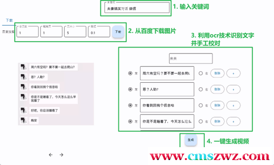 制作微信对话视频,一般做法是:1. 去网上找对话素材2. 找一个模拟微信对话的工具3. 使用对话模拟器生成图片4. 对图片进行剪辑,生成视频这样下来几个步骤其实挺麻烦的,并且制作每个视频其实都属于是重复劳作。所以我们今天,教大家制作一个一键生成`微信对话视频`的工具,让你能够省时省力,抢占先机!只需要点击一下便可以自动生成视频设备需求:电脑