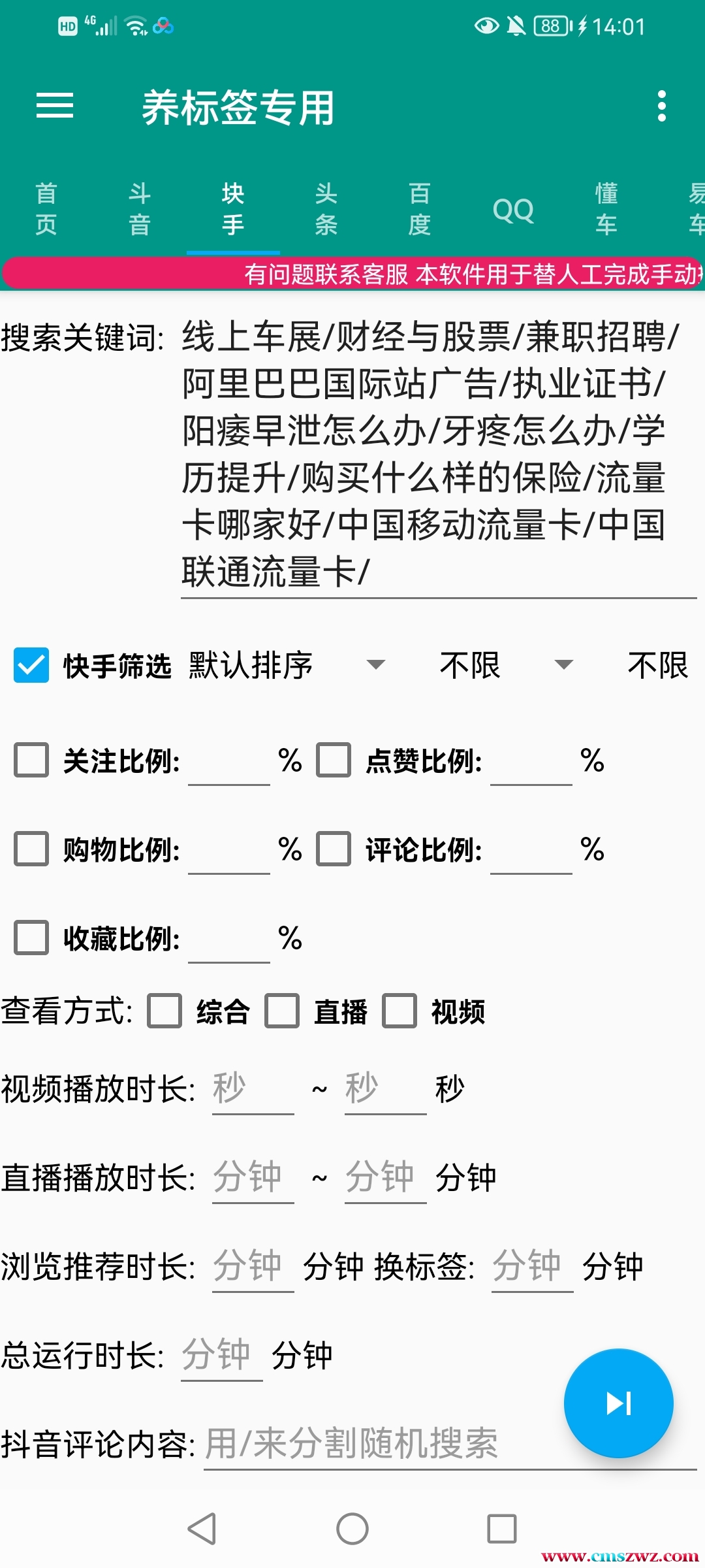 包含了抖音、快手、头条、百度、QQ、懂车平台养号养标签脚本