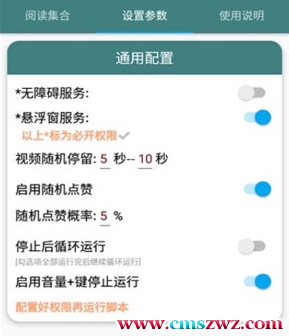 1、在运行脚本之前,必须打开无障碍服务和悬浮窗口,否则将不能运行!