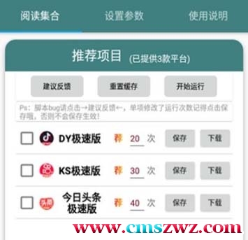 能够帮助用户们免费自动领取快手极速版、抖音极速版和今日头条的金币,是三合一最新版本,能够同时运行三个程序的脚本。