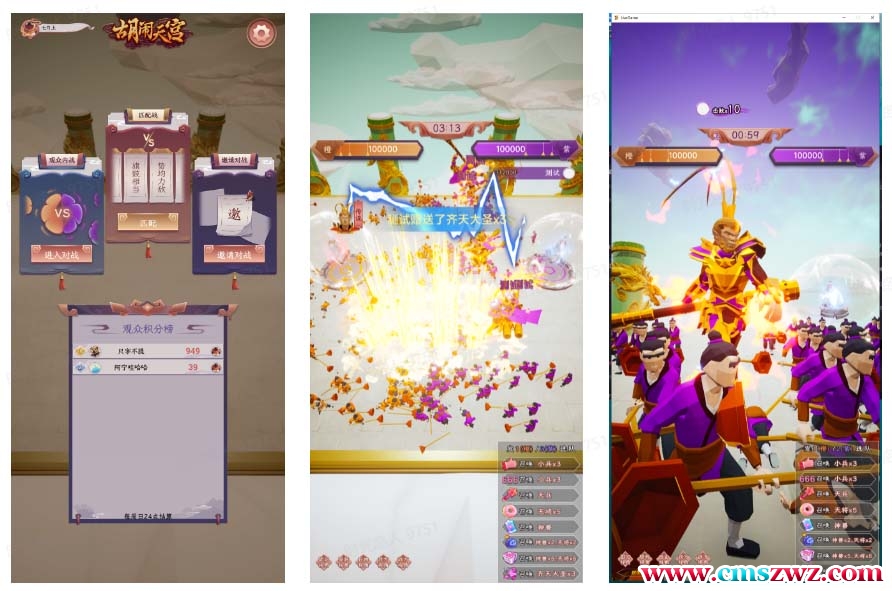 两位仙人分别坐镇两端,双方派遣小兵、天兵、天将、神兽、悟空(还有更多互动会持续更新!)去围攻对方仙人取得胜利。