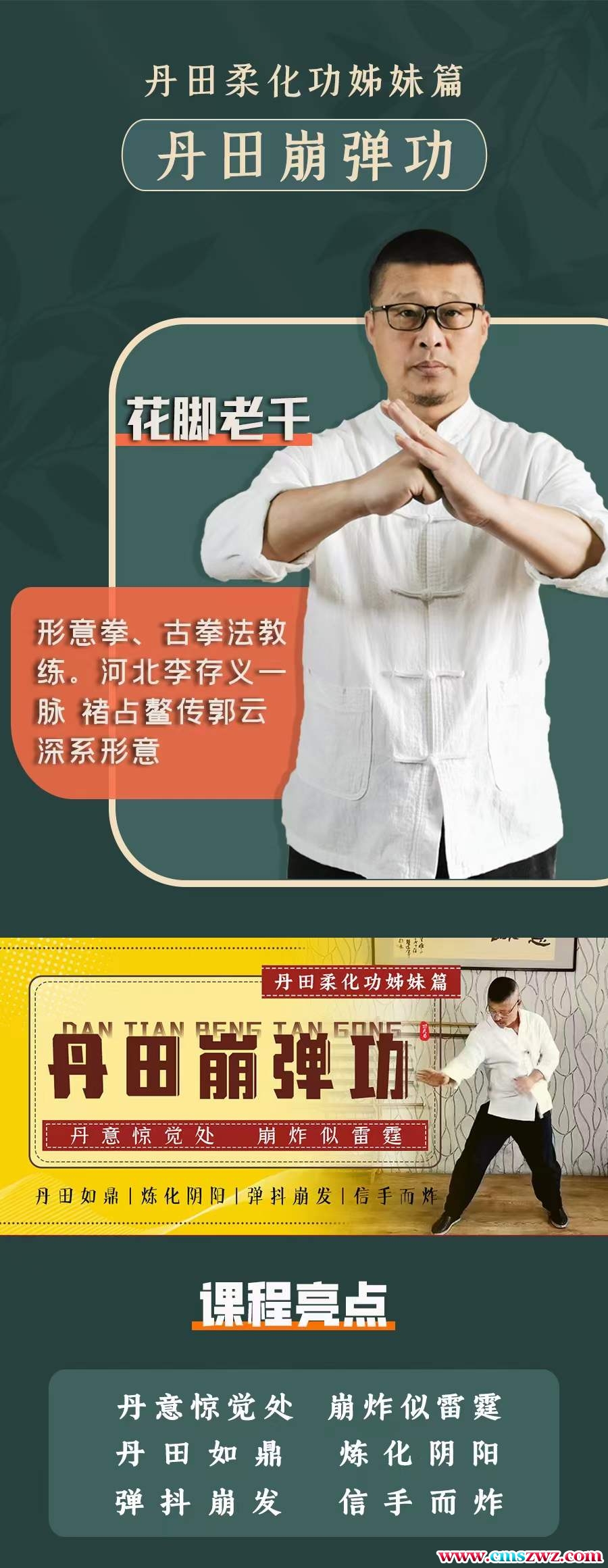 课程编号:D229015万千 丹田弹崩功丹田弹崩功,是田丹柔化功(抟气法)的入深和延伸,抟气为“练”,崩弹为“用”,属丹于田训法练中高的级功法,传武统术弹中的抖,形中意拳的抖绝