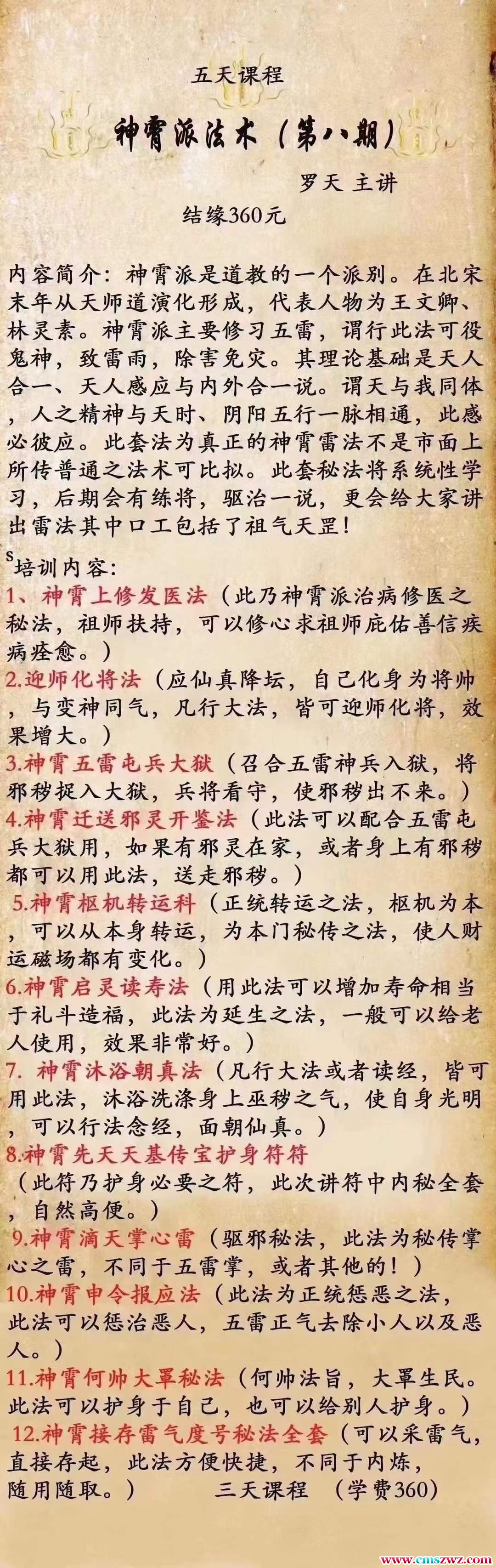 罗天.神霄派法术(八期)录制视频➕课件。五天课程。2022年9月初刚讲完的课程。