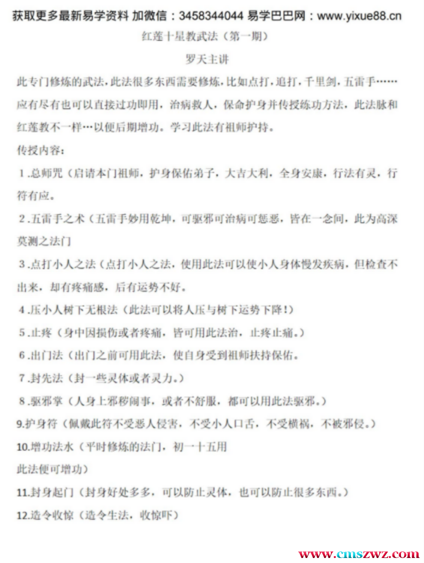 罗天-红莲十字武法(第一期)录音+文档。共有十二个法进行讲解,喜欢道法的朋友可以看看