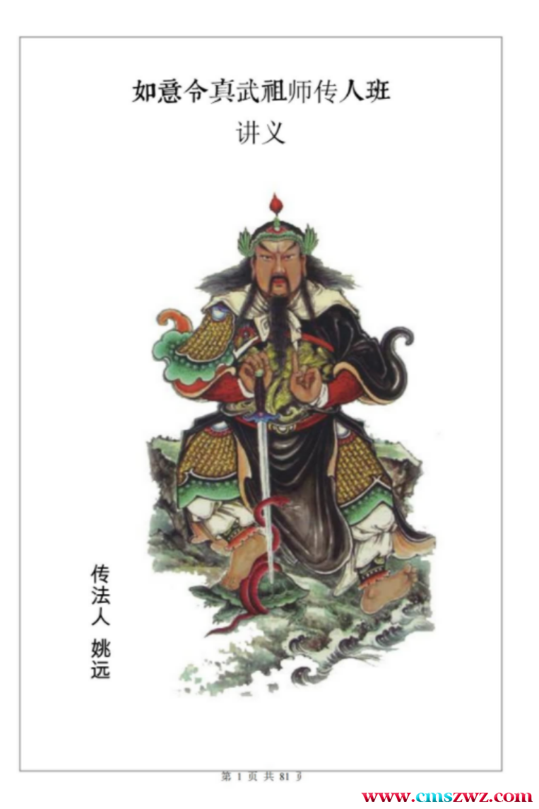 姚远-财神体如意令真武祖师传人班讲义.pdf ,81页。讲解的内容很多,很多法围绕着催财富贵兴家,然后发现有不少内容和天医堂道法传授的法接近,比如葫芦罡,同时二者都在山东烟台出现,不知道属于变种还是一脉传承?因为看到网络上有人说姚远的三界查事法钓鱼式传授,但天医堂却是直接传授。截图看到的内容仅是46页内的内容,46页后还有18章内容,也就是法多达几十个,后面的多为各式令法。然后之前网络曝出来的好像就是四十多页的这个没有后面十八章内容。