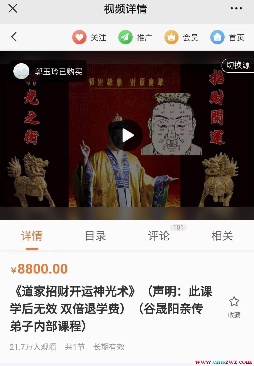 课程编号:D2201-51晟谷阳道家秘传招财开运神光术,视频1集。这个视频讲解犹如录音一样,图像不动,但够能听明白。招财旺的运方法,多人亲自测试,非常有效,附带秘传咒语。视里频教两了个方法,