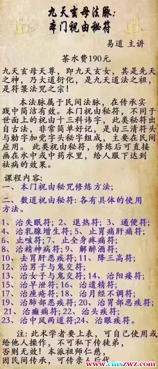 易道2022年12月九天玄母法脉祝由秘符课程视频➕课件。