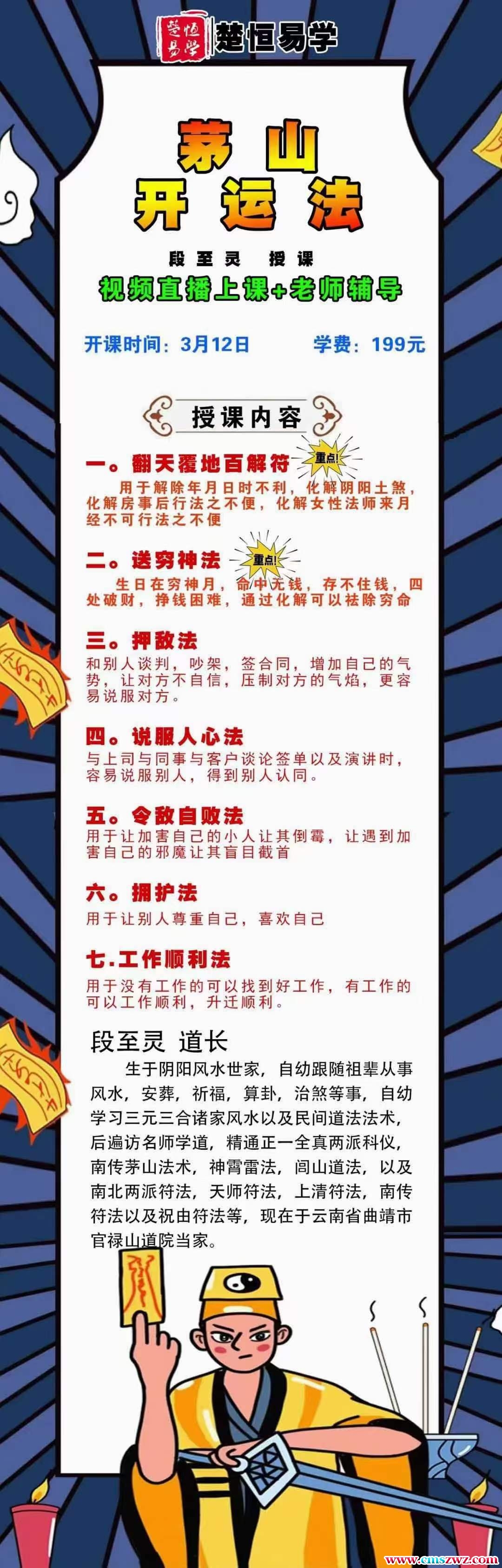 课程编号:D2307-01茅山开运法(一集高清视频)段至灵道长授课资料授课内容一。翻天覆地百解符用于解除年月日时不利,化解阴阳土煞化解房事后行法之不便,化解女性法师来月经不可行法之不便二。送穷神法 -