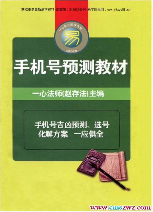 赵存法手机号预测教材.pdf,66页。讲解数字0-12的万物类象和含义,起卦法,然后就是如何预测婚姻,财运,伤病灾,性格,化解的方法,并讲解一些手机尾数案例。