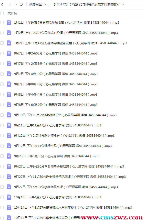李昀骏高导师等风水数字音频收录50多集录音,没有具体的讲课目录,但我们提供了截图给您参考!