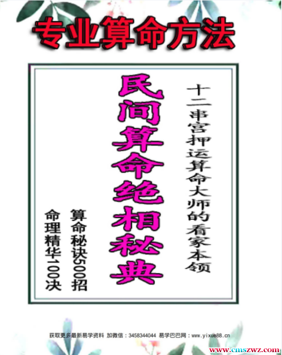 民间算命绝相秘典、算命秘诀500招pdf,513页。内容由浅入深,基础到高级部分均有,并包含有盲派的东西。注意,图片看去不怎么清晰,是因为图片被我们压缩过,当然这个电子书肯定不是高清的,但清晰度不影响学习。