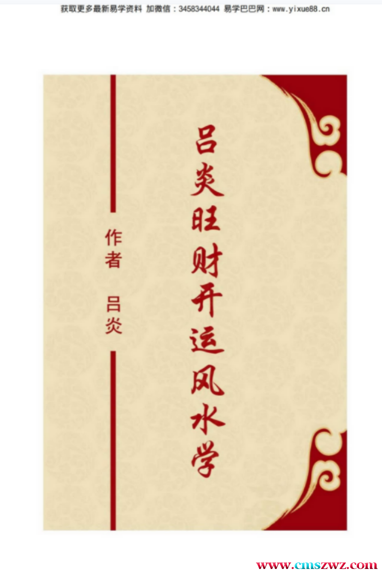 吕炎旺财开运风水学.pdf,344页。讲解多种开运风水,文昌开运,桃花开运,商业风水,旺财风水,流年开运布局,并有一些助于风水提高的内容。