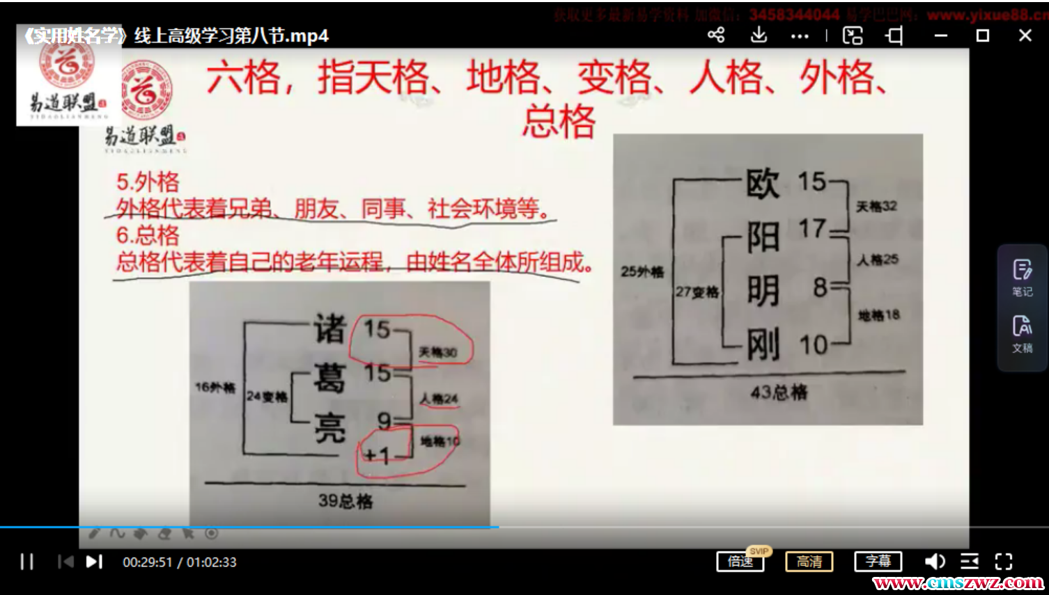 德刚《实用姓名学》线上高级班教学视频9集约10.5小时课时,需要的朋友联系我
