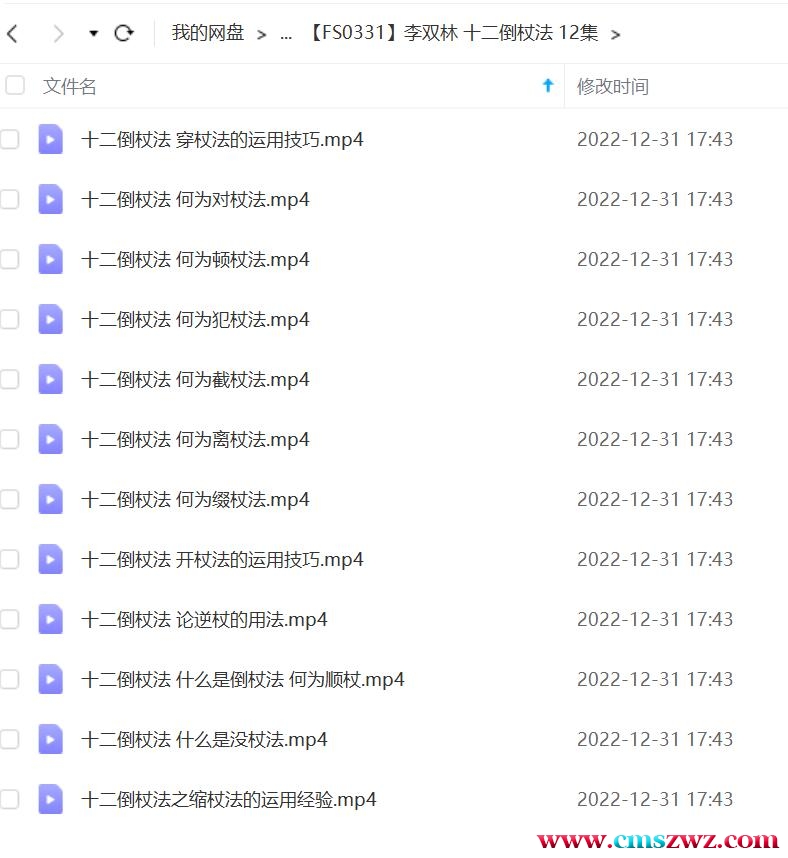 李双林十二倒杖法12集视频。