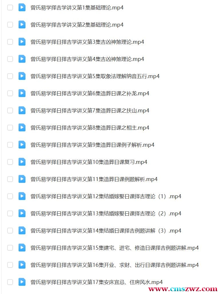 曾氏易学择吉学视频课程17集,画面声音清晰。