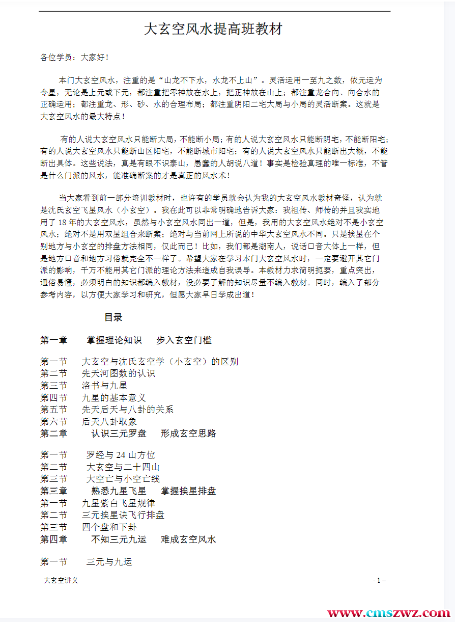 当大家看到前一部分培训教材时,也许有的学员就会认为我的大玄空风水教材奇怪,认为就是沈氏玄空飞星风水(小玄空)。我在此可以非常明确地告诉大家:我祖传、师传的并且我实地用了18年的大玄空风水,虽然与小玄空风水同出一道,但是,我用的大玄空风水绝对不是小玄空