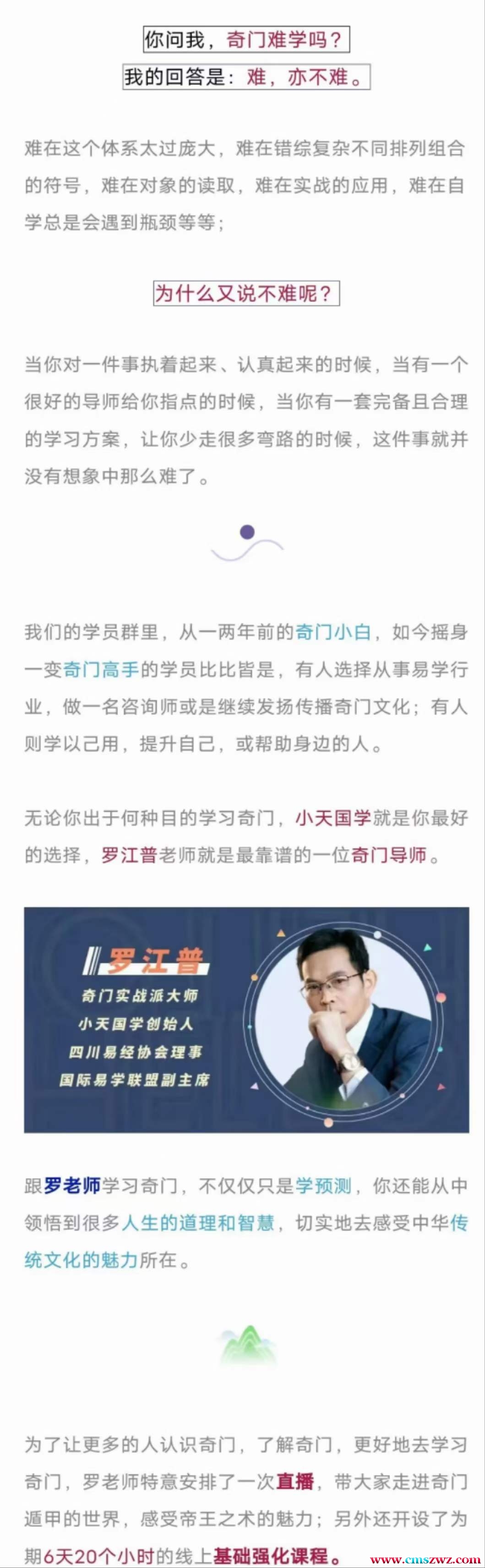 课程内容要主包含:基础知识面全讲解、理论强化,学习卦断思路,夯实奇基门本功。 本课次程共6天20个小时45分钟,罗江老普师讲通课俗易懂,深受家大喜爱,学习奇门推的荐最老佳师。