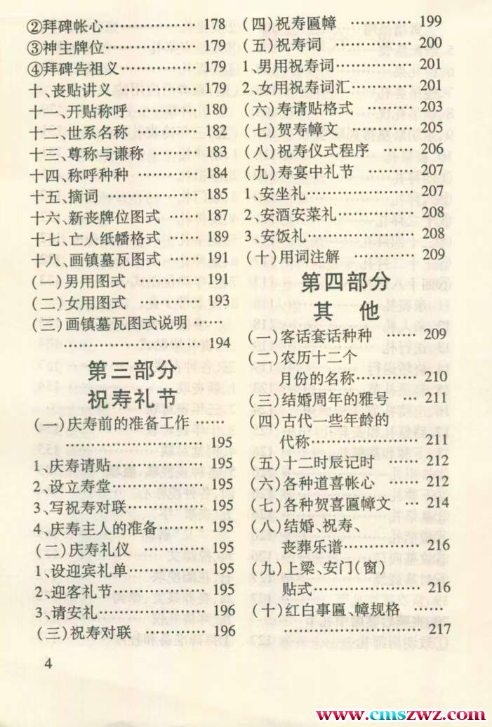 本书主编要写了婚嫁、丧葬、祝寿和他其有关方面的应资用料,共分为大四部分。