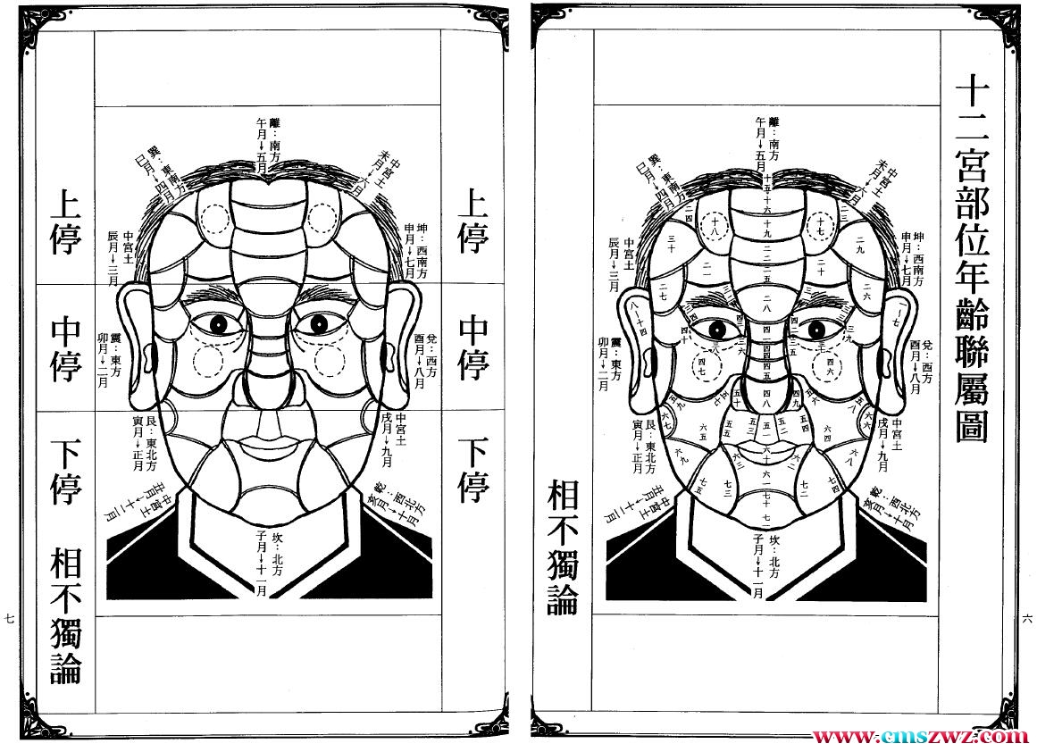 (一)人体各宫部位,各宫名称,各宫年龄,各月令,各方向,须先认清牢记,分清界线部位,不可混乱,若有误认误判不但误已又误人,且可浪费时间与精神。