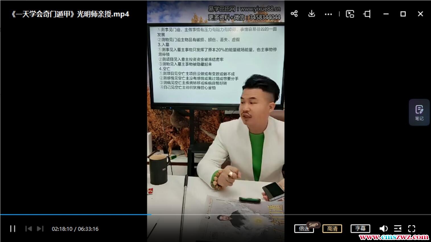 夏光明《一天学会奇门遁甲》视频一集超长视频,六个半小时,从基础到实战运用,细节详细笔记清晰!