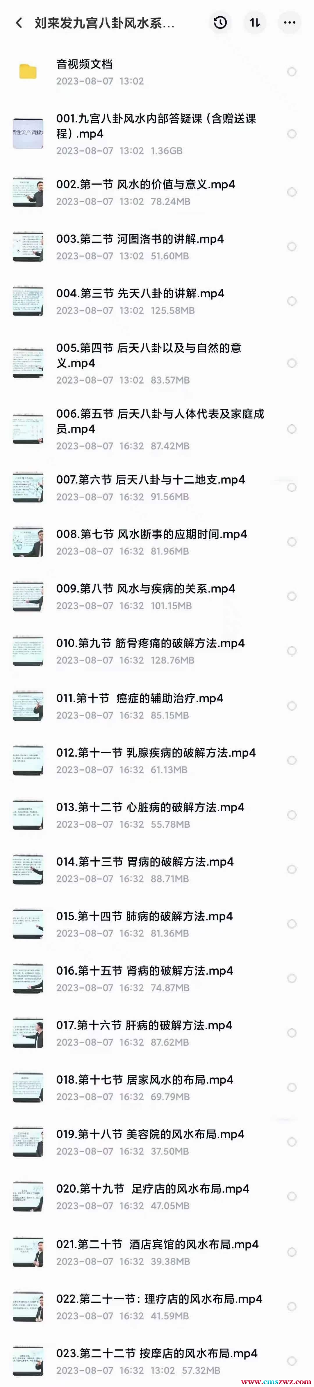课程编号:Y2401-65刘发来《九宫八卦风水》课程内容风水卦八篇:第一节:什么风是水、风水价的值与意义第二节:河图洛书讲的解第三节:先八天卦的讲解第四节:八卦符号讲的解第五节