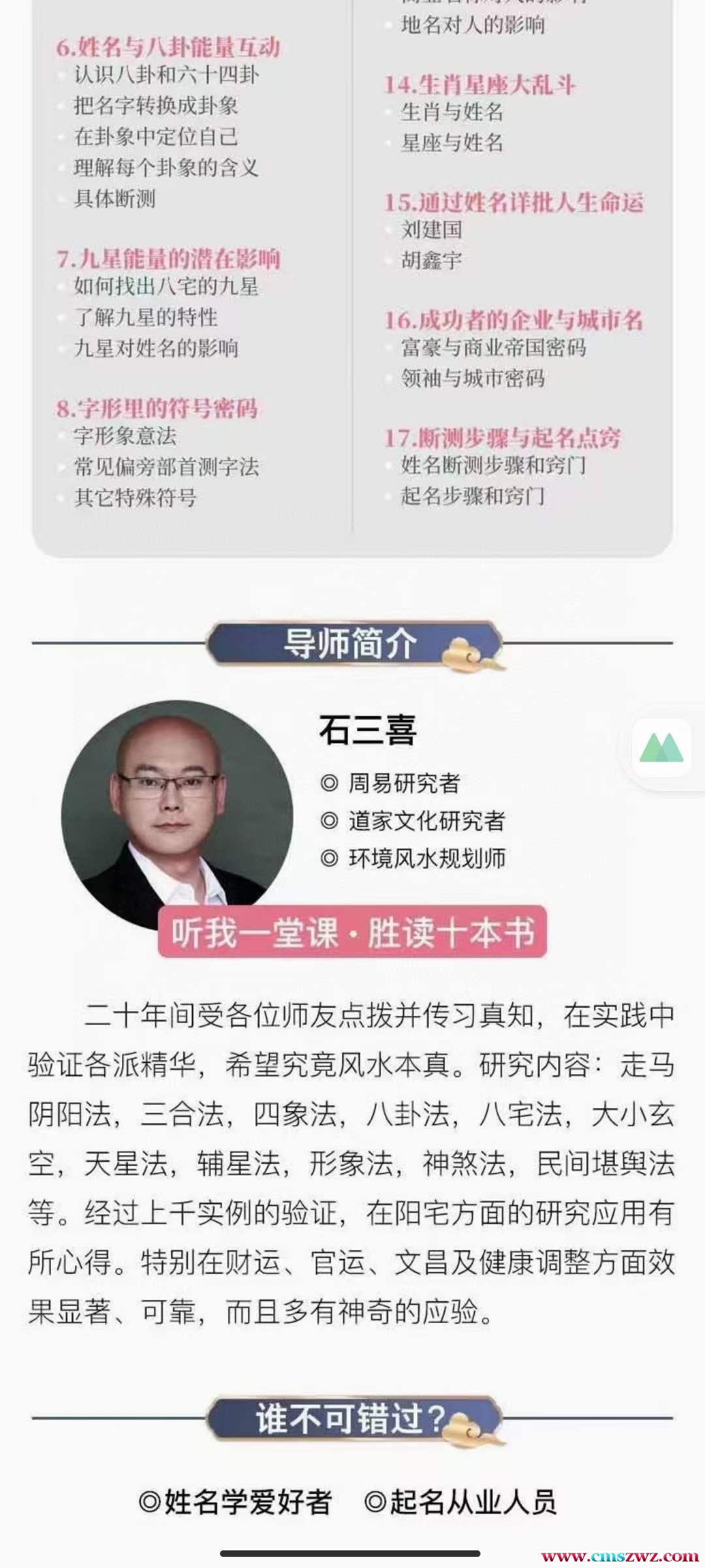 (姓名学)石三喜·姓名真髓 视频17集 视频课程 感兴趣请私聊!