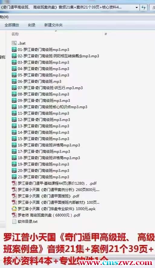 罗普江小天国《奇门甲遁高级班、 高级班案例盘》音频21集+案例21个39页+核心资料4本+专业软件1个