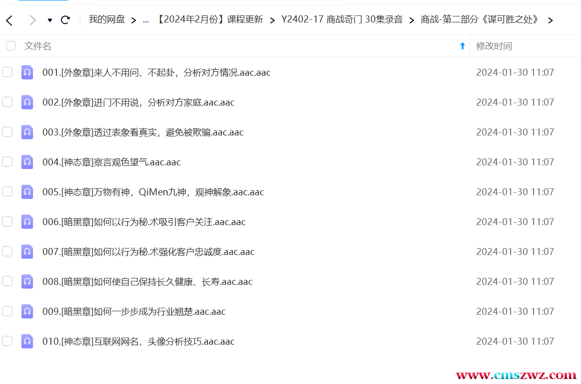 课程编号:Y2402-17001.《商战QiMen第一部分“方位和布局”》总介绍.aac.aac002.[环境章]逐层环境对自己的意义.aac.aac003.[环境育]知晓影响自己最大的几个方位.aa