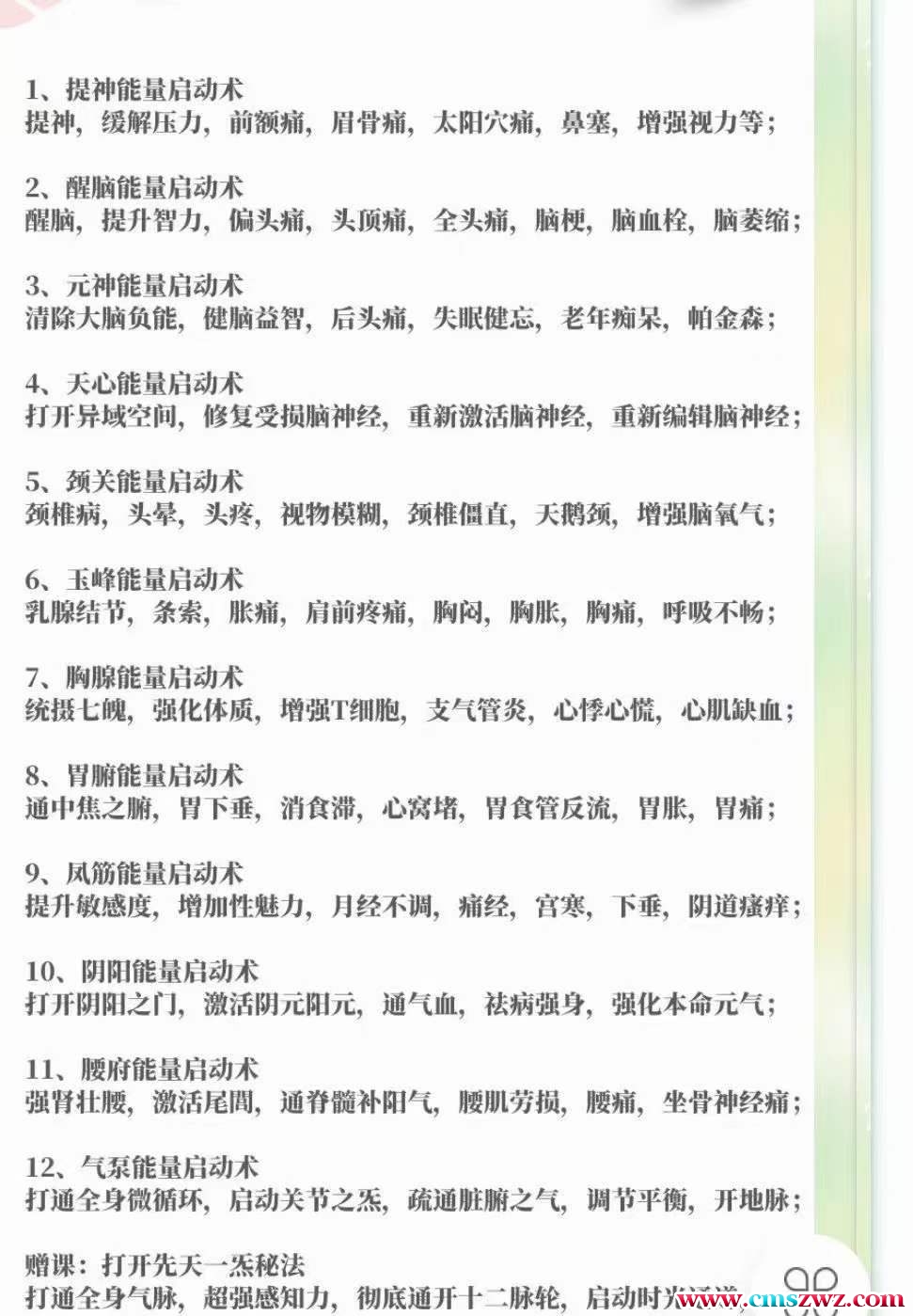 课程编号:Y2401-17道家能量启动术精品网1、提神能量启动术提神,缓解压力,前额痛,眉骨痛,太阳穴痛,鼻塞,增强视力等;2、醒脑能量启动术醒脑,提升智力,偏头痛,头顶痛,全头痛,脑梗,脑血栓,脑萎