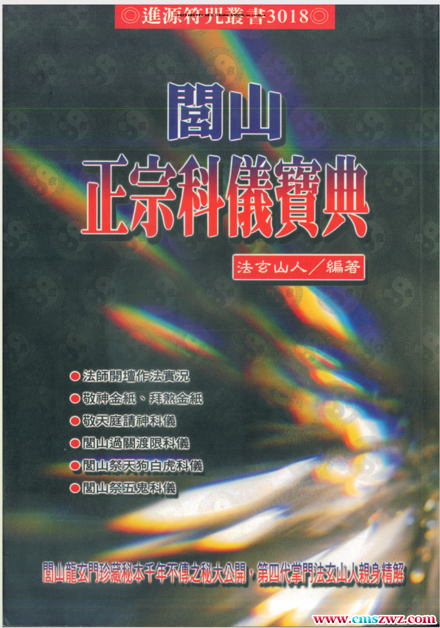 《闾山正宗科仪宝典》是本门所用一般科仪的真诀。从请神 、禀告、请官将到祭送,所需运用之珍贵符录,以及各种应用文 疏、封函写法,全部详尽搜罗,珍重付梓,盼能传承绝学,造福 世人。