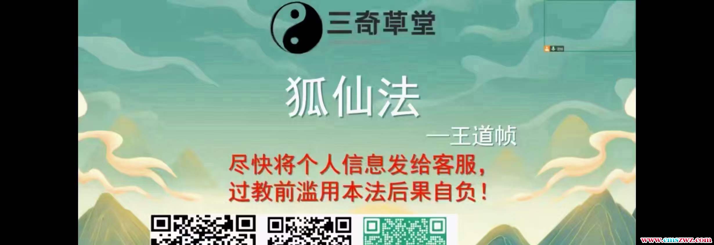 三奇草堂-王道祯 黄狐元君仙狐法,视频49分钟,讲的详很细但是啰不嗦,普通话清晰,文档投屏同讲步解