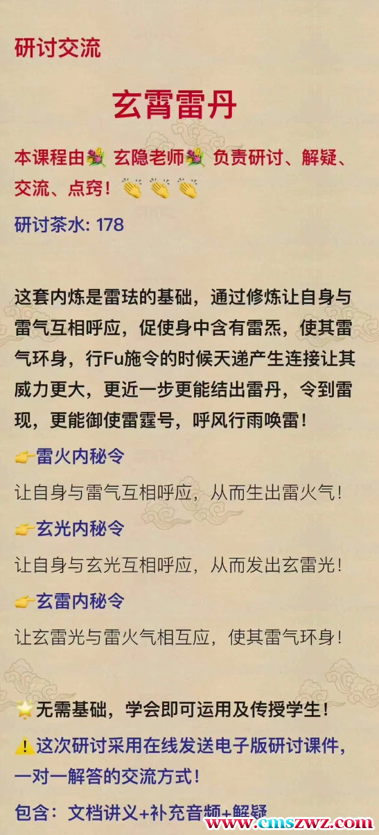 课程编号:Y2401-140这套内炼是雷珐的基础,通过修炼让自身与雷气互相呼应,促使身中含有雷杰,使其雷气环身,行Fu施令的时候天递产生连接让其威力更大,更近一步更能结出雷丹,令到雷现,更能御使雷霆号