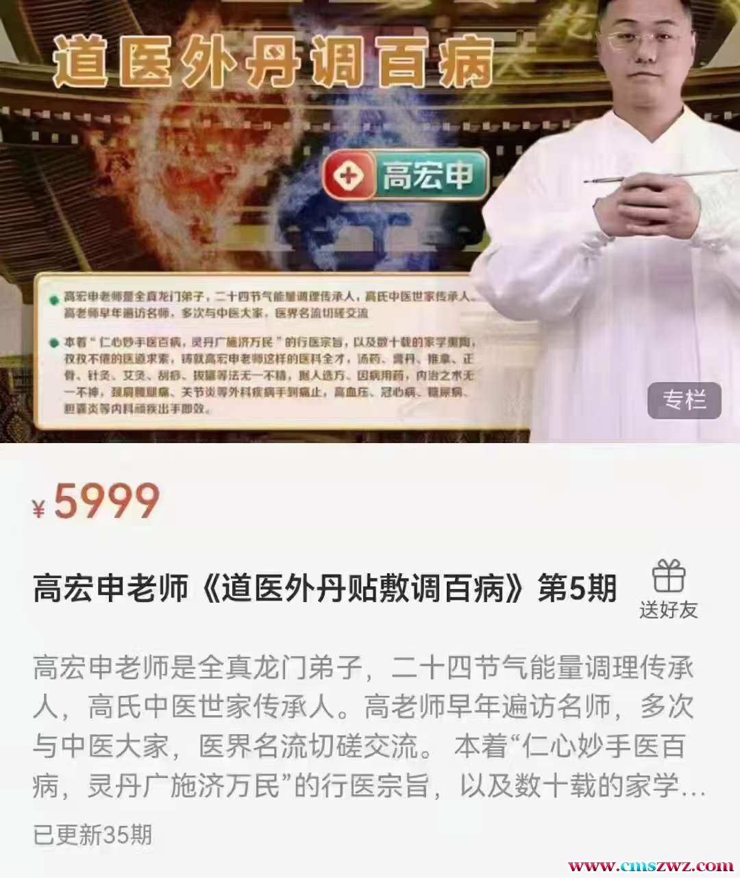 课程编号:Y2401-151高宏申 道医外丹敷贴调百病 第5期高宏申老师全是真龙门弟子,二十四节气能量理调传承人,高氏中医世家承传人。本着“仁心手陟医百病,灵丹广施万济民”的