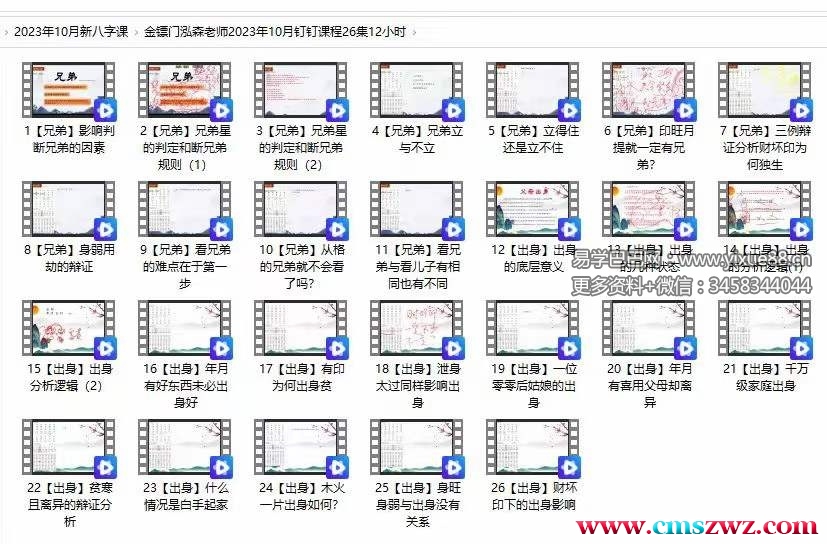 最新引进:金镖门森泓老师2023年10月钉钉上课视频26集,12小时时长,详细讲解三过关父母出身关,兄弟妹姐关部分,从现实本结质合八字易理,一听就懂,一就学透,并课且上配有量大案例讲解,基上本属于手手把教学,非常值得习学