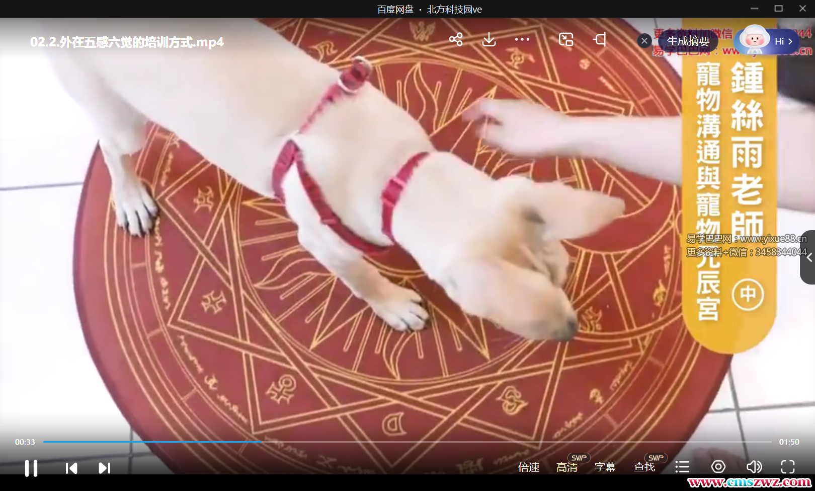 课程编号:Y2402-7601.1.行前准备该注意的事项,有哪一些禁忌? .mp402.2.外在五感六觉的培训方式mp403.3.内在眼视觉、耳朵听觉、内在情绪感受的分辨.mp404.宠物沟通与宠物元