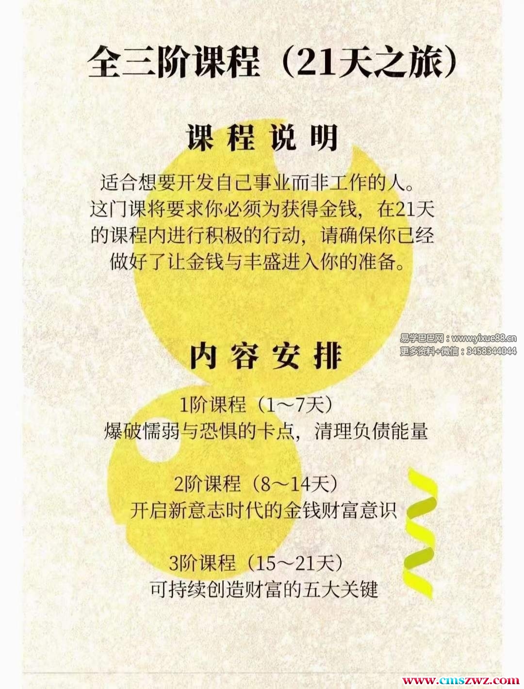 课程编号:X2401-12?『无限心法』金钱财富丰盛课金钱不仅仅是物质的能量更是爱的能量。正视恐惧,祓除持续产生消极用作的病毒程序。当你的所意有识统一