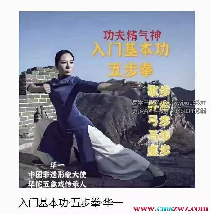 课程编号:Z2401-03【五禽戏新课】非遗形象大使,华佗五禽戏传人 华一老师 三套课程1、入门基本功:五步拳2、华佗五禽戏:基础五式教学3、华佗五禽戏:标准28课华佗五禽戏第59代传人