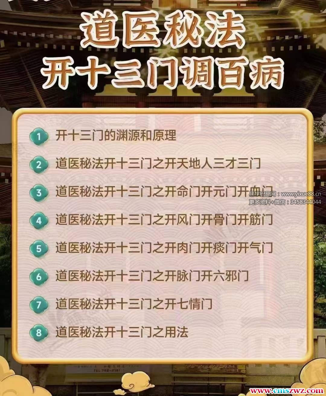 课程编号:Z2402-05【道医好课】高宏申老师《道医秘法开十三门调百病》第12期高宏申老师是全真龙门弟子,二十四节气能量调理传承人,高氏中医世家传承人。高老师早年遍访名师,多次与中医大家,医界名流切